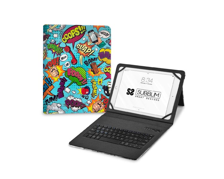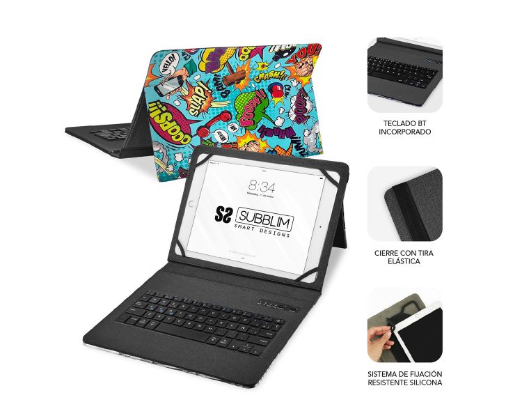 Este Teclado Bluetooth va integrado en la funda de alta calidad compatible con todas las Tablet del mercado de 9 a 11”. Se conecta a la perfección con cualquier dispositivo compatible con la tecnología Bluetooth de última generación 5.2 para una escritura más rápida y cómoda. Un mecanismo de resorte debajo de cada tecla asegura una respuesta táctil con cada golpe, lo que le ayuda a escribir más rápido y con menos errores que en una pantalla táctil. El diseño de la funda Ultradelgada agrega la máxima protección con un volumen mínimo. La puedes posicionar en modo Stand para una correcta escritura o visionado de vídeos. Esta funda versátil y protectora de Subblim presenta un teclado integrado que permite un transporte más liviano. Podrás cambiar entre el trabajo y el juego con facilidad en cualquier lugar donde lo uses.