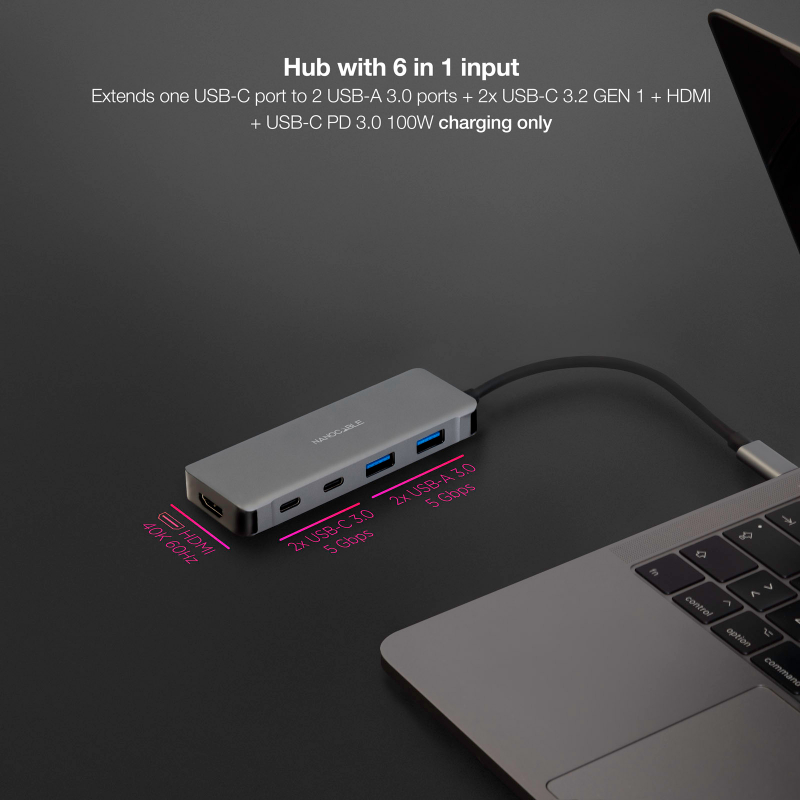 HUB USB-C 6 PUERTOS USB 3.2 15 CM NANOCABLE