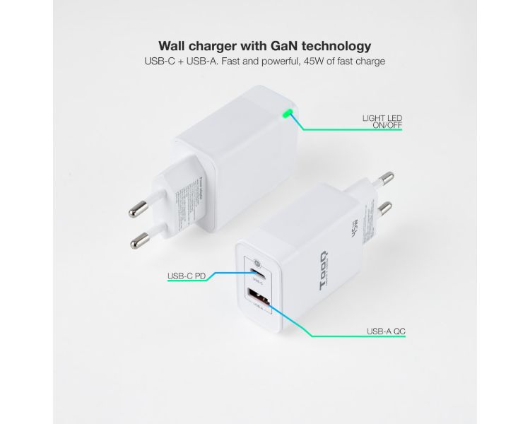 La fabricación con Gan (Nitruro de Galio), permite un suministro de corriente más eficiente disminuyendo las altas temperaturas que soportan los dispositivos. Además, esta tecnología proporciona la ventaja de poder reducir aún más el tamaño de nuestros cargadores.